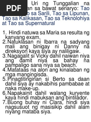 Learn vocabulary terms and more with flashcards games and other study tools. Tao laban sa tao Tao laban sa sarili Tao laban sa lipunan Tao laban sa kapaligiran o kalikasan SEE ALSO. Tao laban sa Kalikasan.